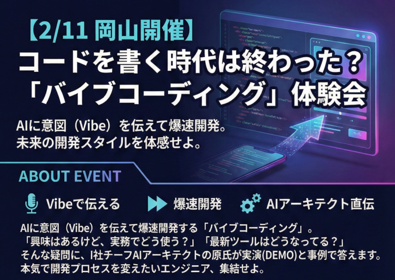 タイトル: 「バイブコーディング」体験会 〜AIに意図(Vibe)を伝えて爆速開発。未来の開発スタイルを体感せよ。〜